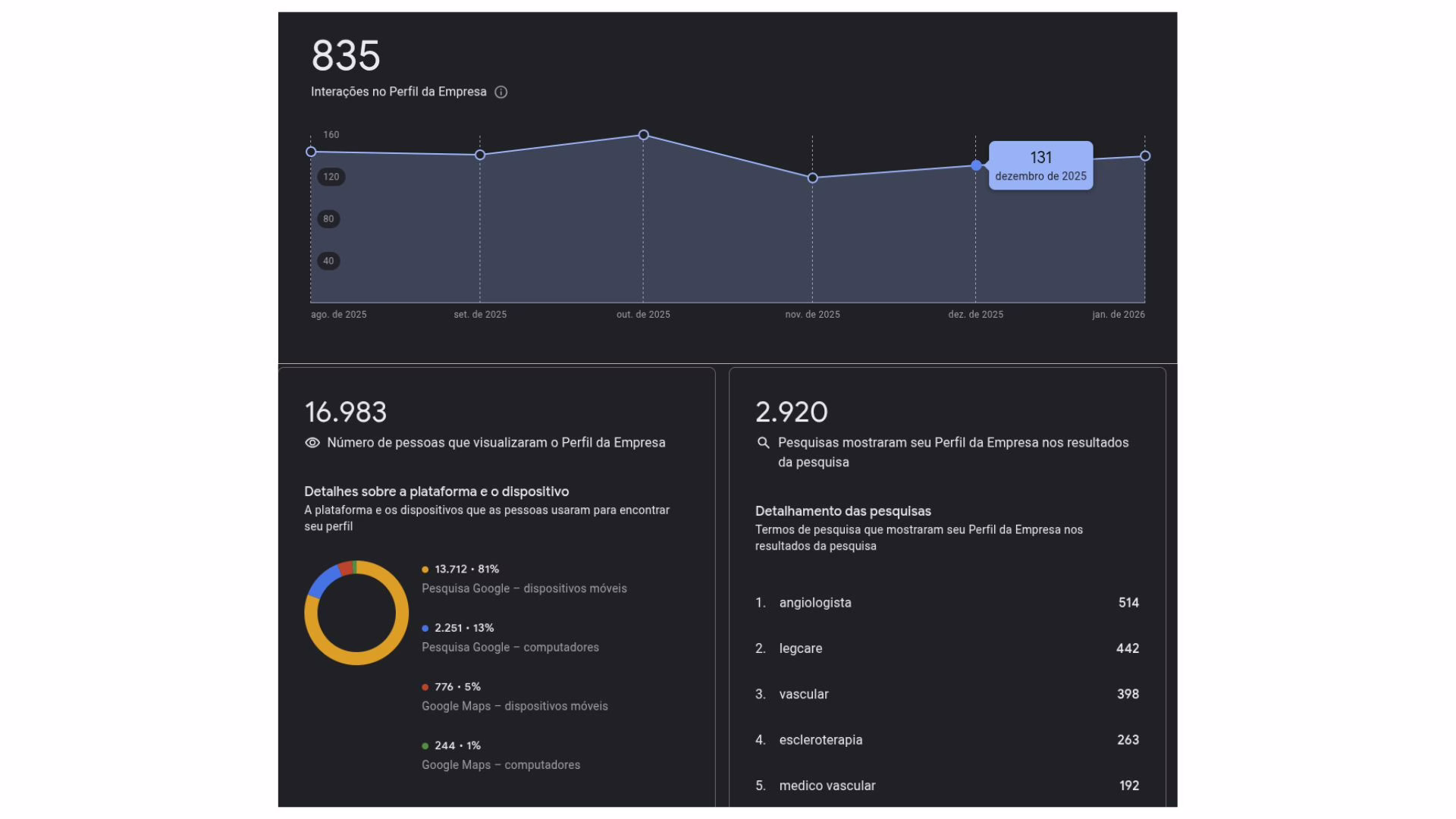 Esse tipo de dado demonstra, na prática, como o SEO local médico impacta diretamente a agenda do consultório.